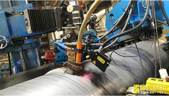 螺旋鋼管在成型過程中,由于受到板材寬度變化、前后擺橋等因素的影響,焊點位置會不斷發生變化。目前,行業內大多采用人眼觀察,人工手動調整偏差。