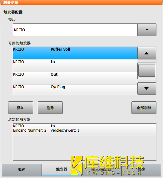 KRC 4 選項卡【觸發器】的設置